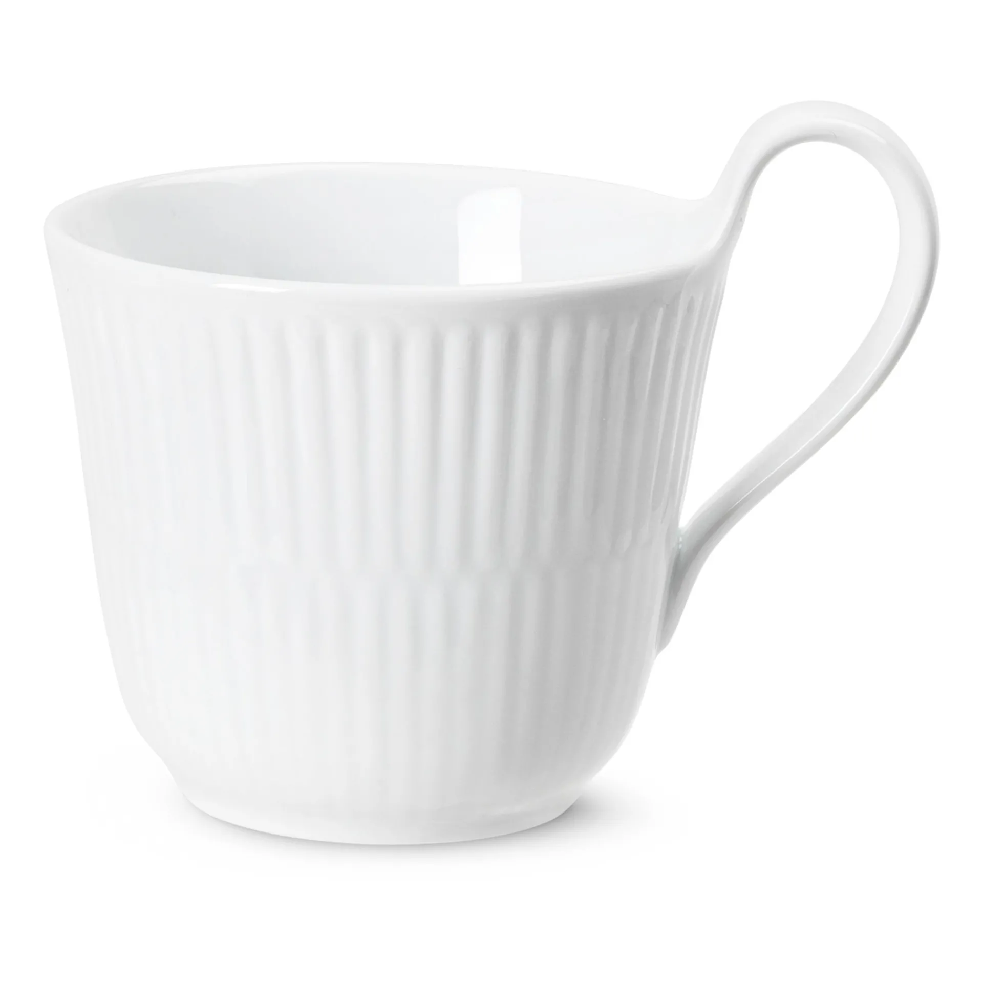 Royal Copenhagen White Fluted Kopp Med Hoyt Handtak Fashion