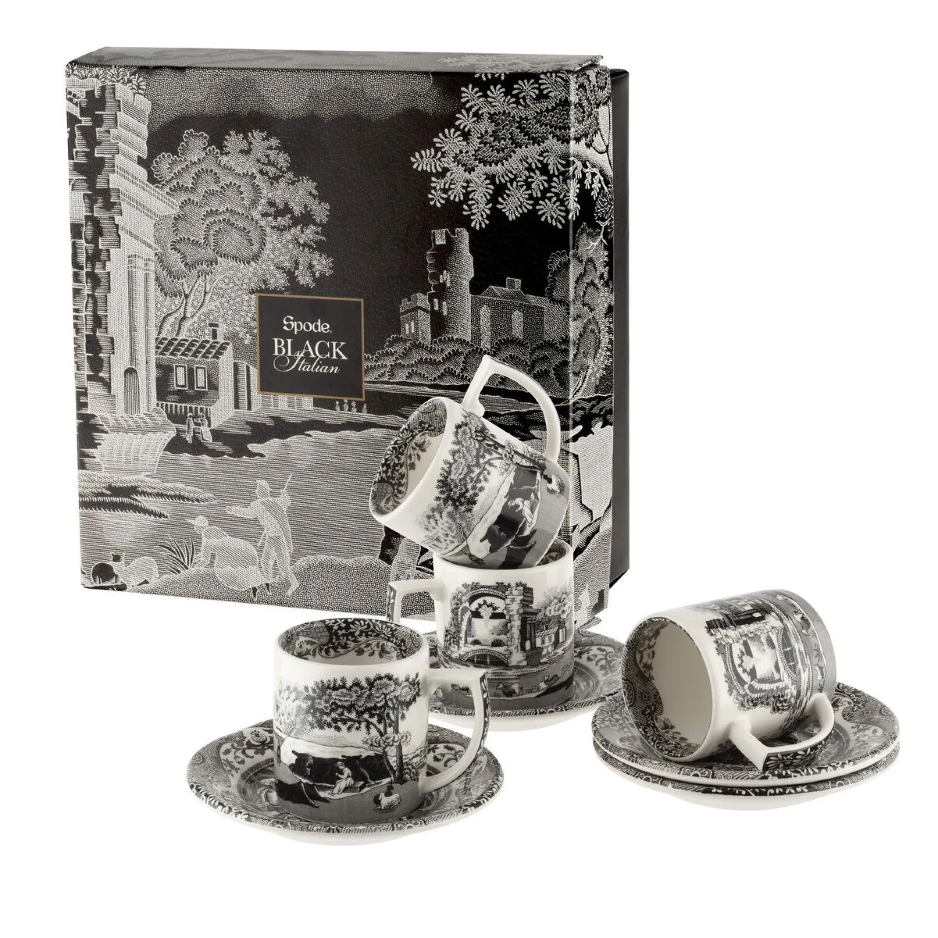 Spode Black Italian Espressokopp Med Fat 4-Stk. Outlet